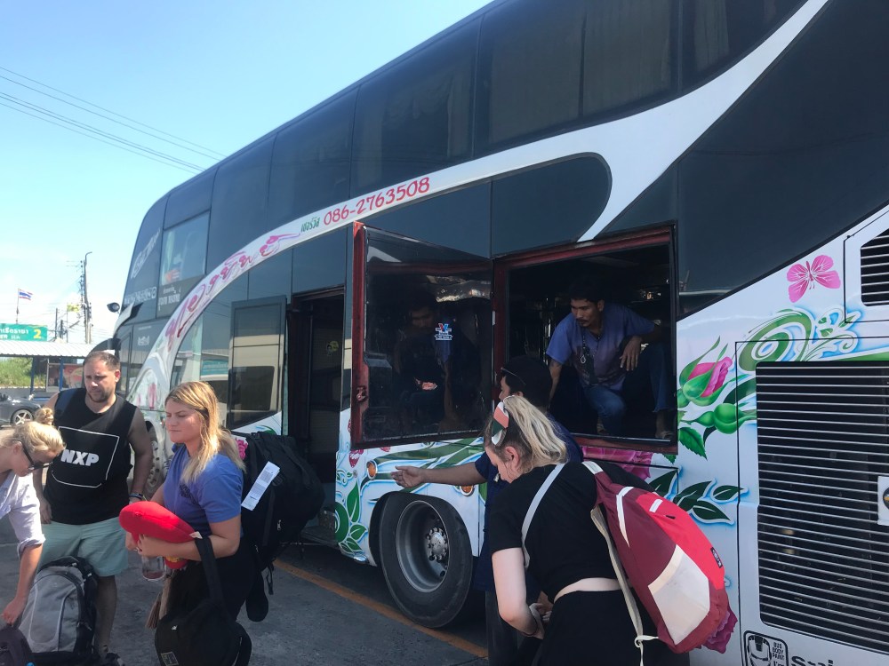 That afternoon we then caught a ferry down the river to see Bangkok and all it has to offer. It’s massive and varies in wealth. You have the very low close and then there’s the rich. There is no real in between. Apparently on average, they make the equivalent to $15 a day CAN. So when you tip, it’s a big deal because it is already technically added onto the bill when you go to pay. The currency is pretty easy to use and understand 20 Baht is equivalent to around $1CAN. We then went back to the hostel and got ready to get on the bus for a 12 hour night bus ride down south to catch a ferry to the islands where we will spend New Years Eve with 20,000 people, which is actually a really big deal here to the locals.