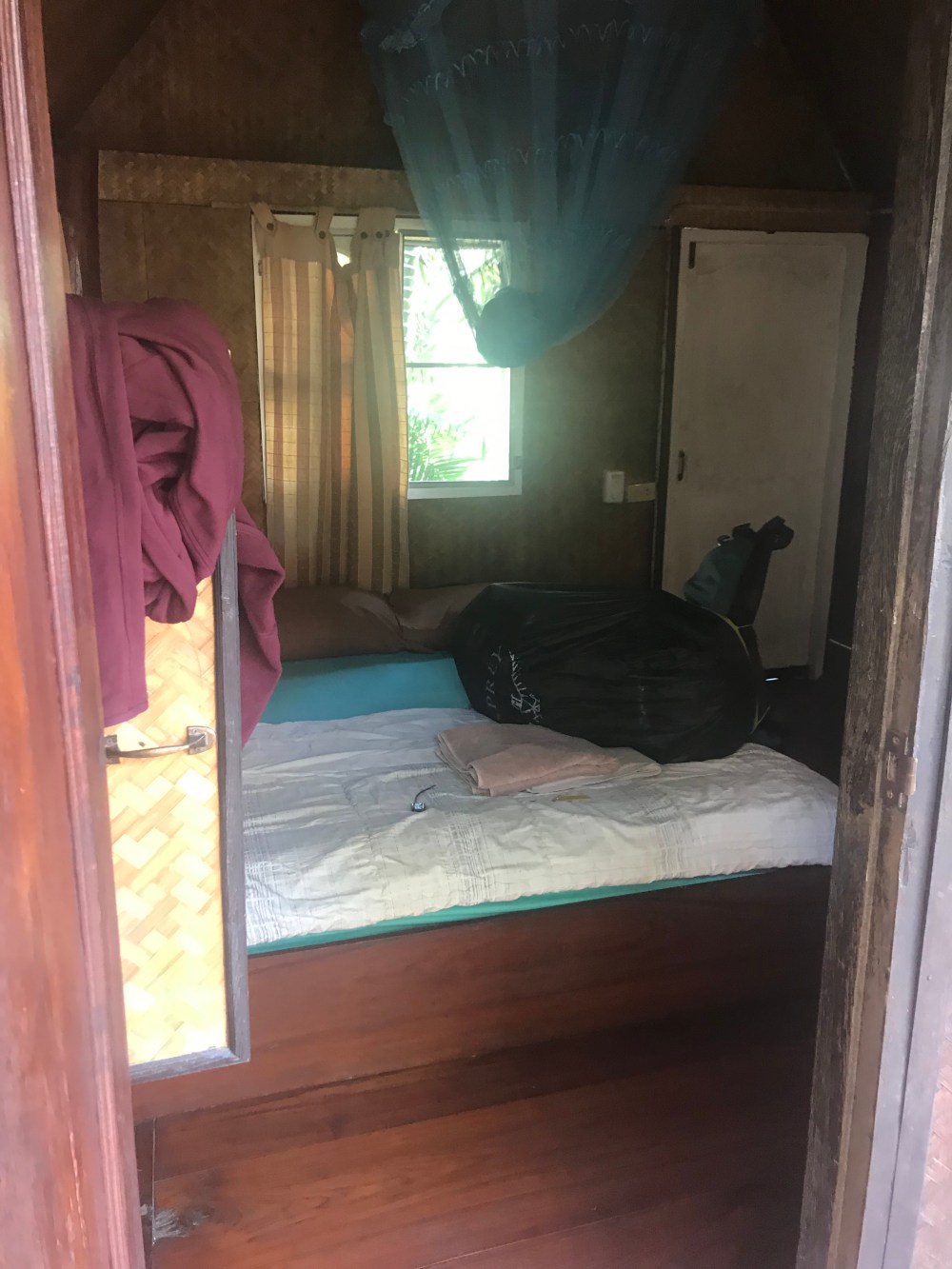 The first night I spent in a private bungalow at buzzas and the second night, I stayed at the same place but in a private room that was massive. I highly recommend this place to anyone who may be travelling here, it’s very laid back and very hippie. They also have a campfire going every night which helps keep the misquotes away as there can be a risk for malaria since you are close to the Burma border.