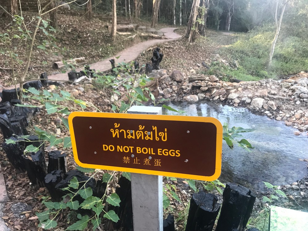 There is a giant white Buddha and Wat to see up on a hill, you can choose to walk to take a scooter up (very happy I learned to ride a scooter), and there are also natural hot springs to go see. The hot springs were neat as you had the more man made ones that people were swimming in and then you have the natural ones about 50m away up a slight hill. Here, people were boiling eggs in it. Some things continue to surprise me here. As you continue to follow the paved path you come across another one that says “do not boil eggs” it made me crack a laugh (see what I did there haha).