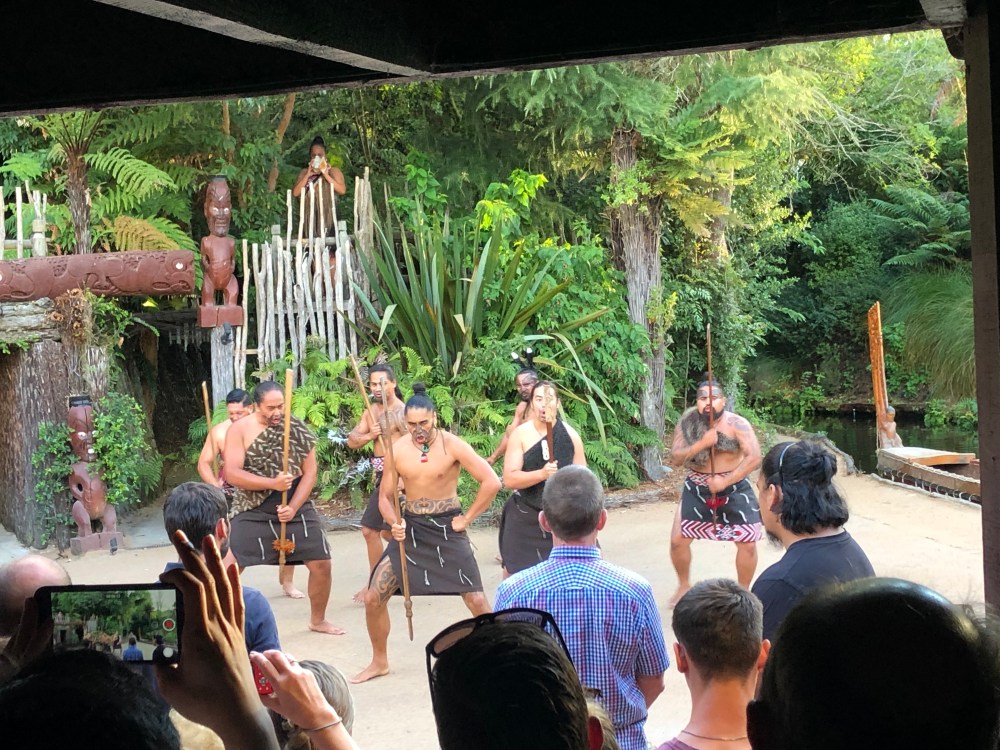 We then continued down to Rotorua which was where we did an overnight stay at the Maori Village. It was a very unique experience that I recommend people do to learn the history and culture. Gordy was asked to be the ‘Cheif’ of our bus tribe by Martin our bus driver we had all the way down and back up again! Basically this entailed accepting a token from the Maori people and speaking on behalf of everyone in our tribe. We got to see cultural dances, the haka, traditional songs and eat traditional food. What I thought was neat was that they made a fried a dough similar to Bannock that we have at home (and it was just as tasty).