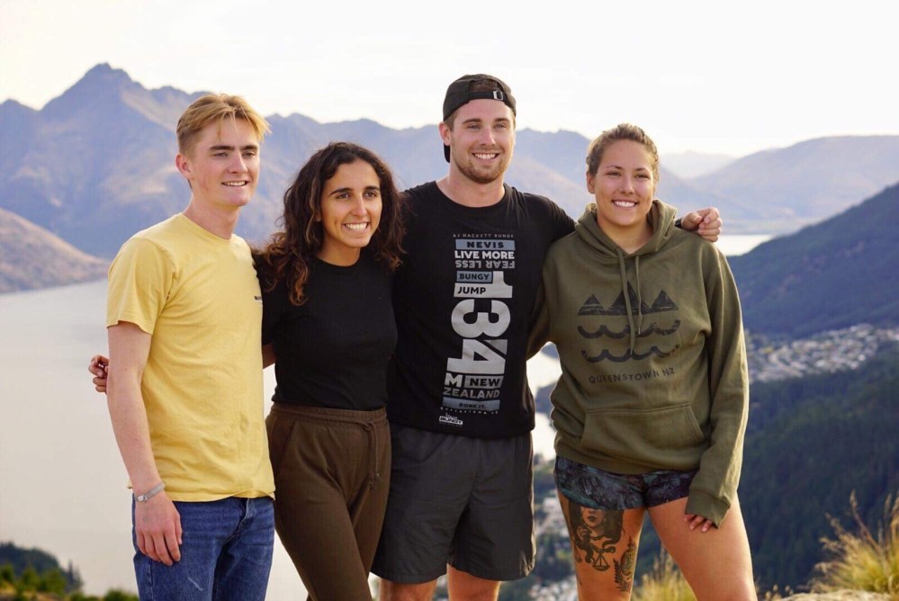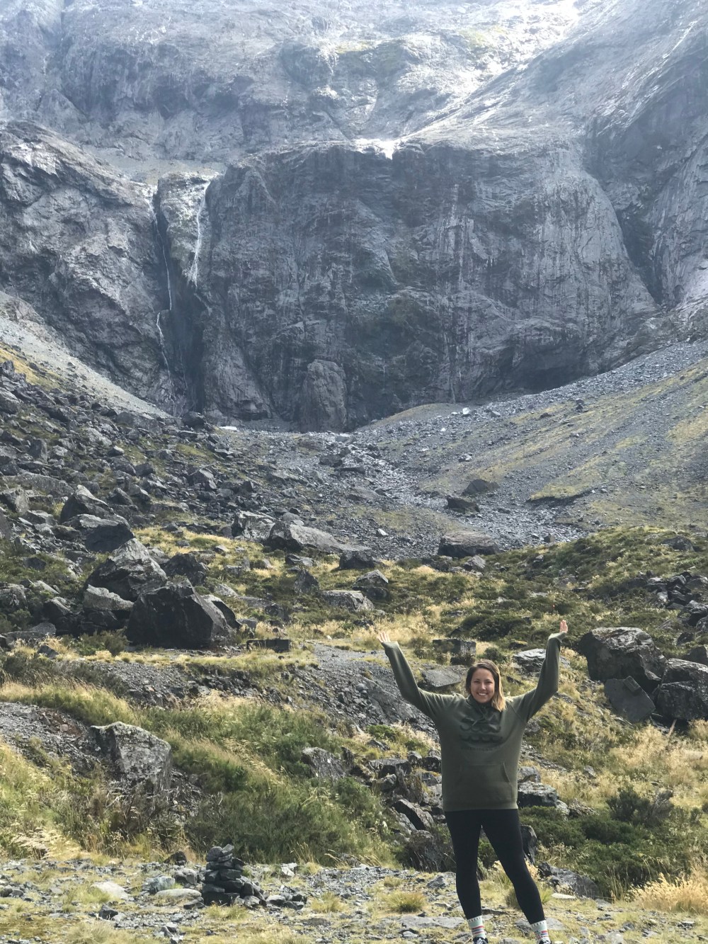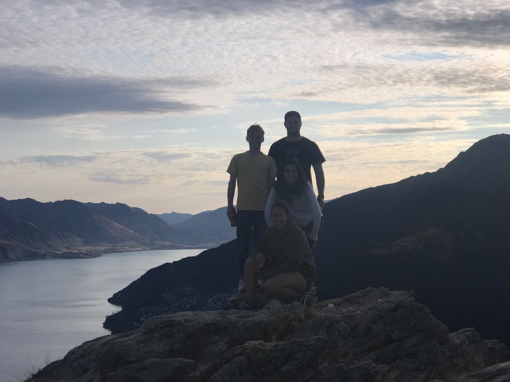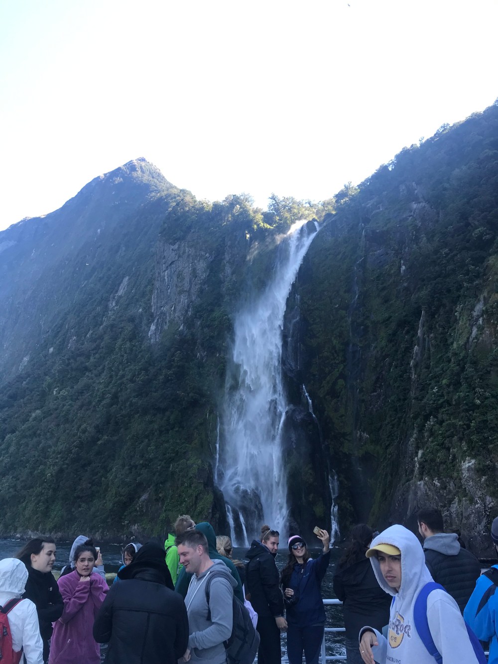 We left Wanaka and finally made it down to the famous Queenstown. We ended up staying 6 days here and enjoying every minute of it. It was a 6 day drinking bender basically. This is where I ran into an old track friend Ian and his fiancΓ©e as well as an old uni friend Danika. It has been amazing how many people I actually have ran into. I think it is part of what made NZ so enjoyable. Queenstown is also known for ya Bungee (134m drop). I had went to go do it but chickened out last minute and balling my eyes out when they first called my name. I can honestly say I do not regret not doing it, however I am sad that I am that terrified of heights especially when I like those adrenaline activities. I would much rather do 10 skydives over again than stand on the bungee platform ever again. One evening, we were with our friends from Germany and they decided it was a good evening for a ‘walk’ up Queenstown Hill to watch the sunset. However, this ‘walk’ was a vertical uphill hike that we completed in 50mins – it was supposed to be a 3 hour round trip hike… however the views were amazing as well as the family photos we got up top. We also did a day trip to a place called Milford Sound (it’s actually a Fjord). Basically it included a boat cruise through the mountains, that included lots of waterfalls! It was gorgeous, definitely something you have to see if your visiting NZ.